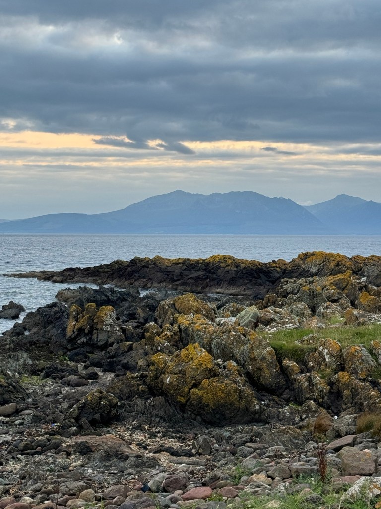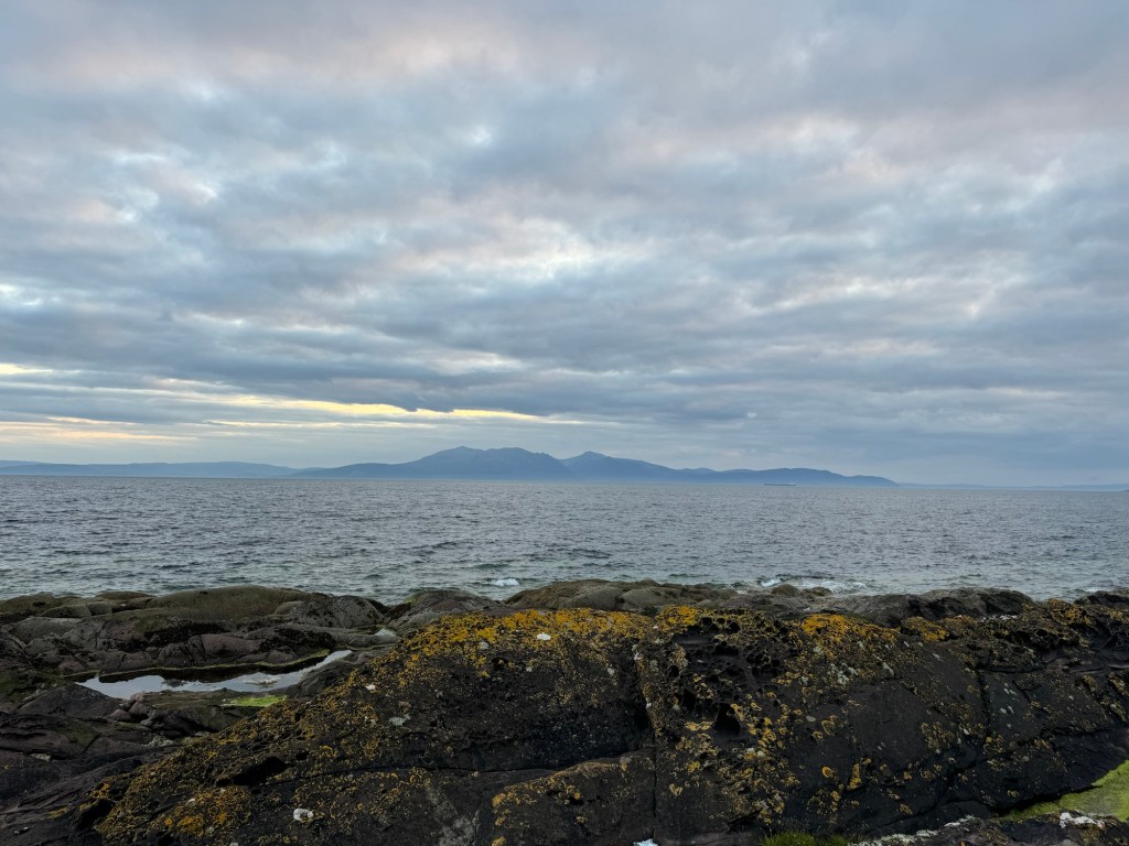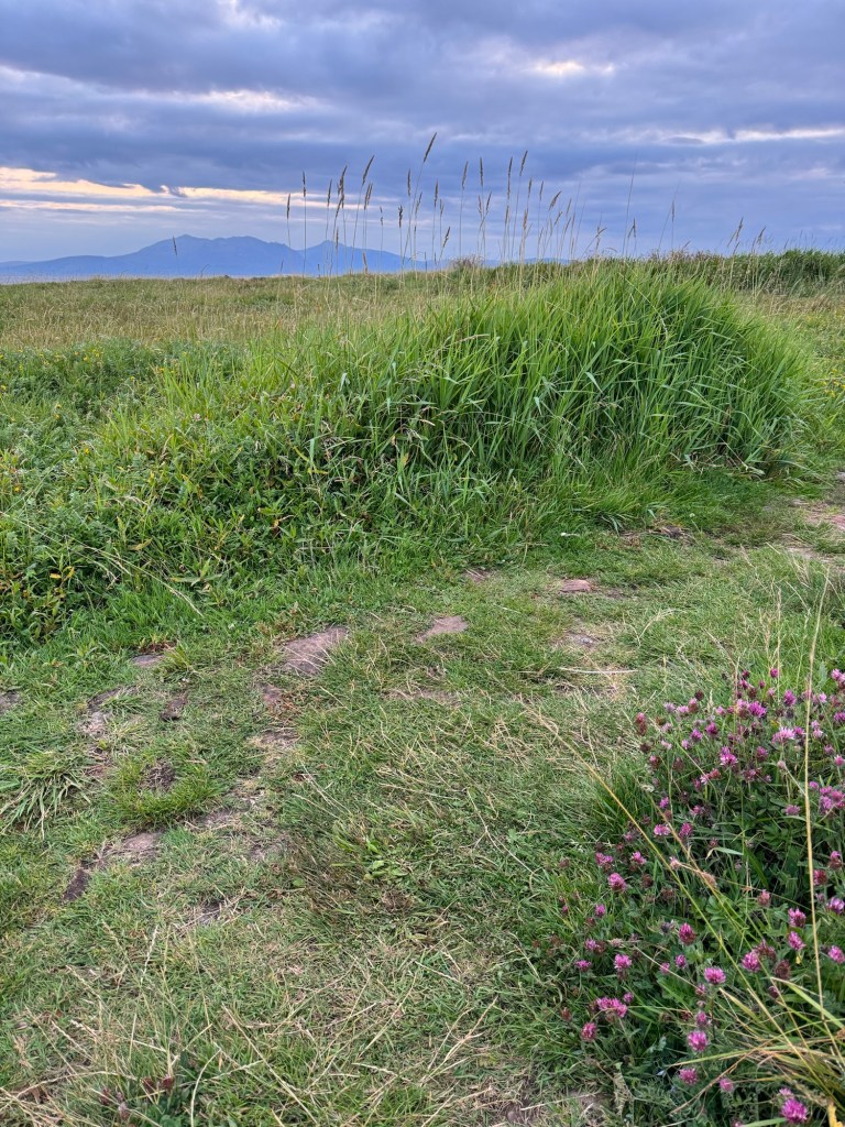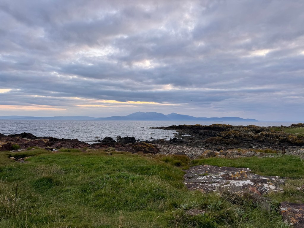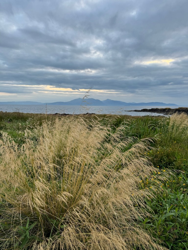 You have to walk through the field to get there. There are loads of photographic opportunities… for foreground in front of Arran.
