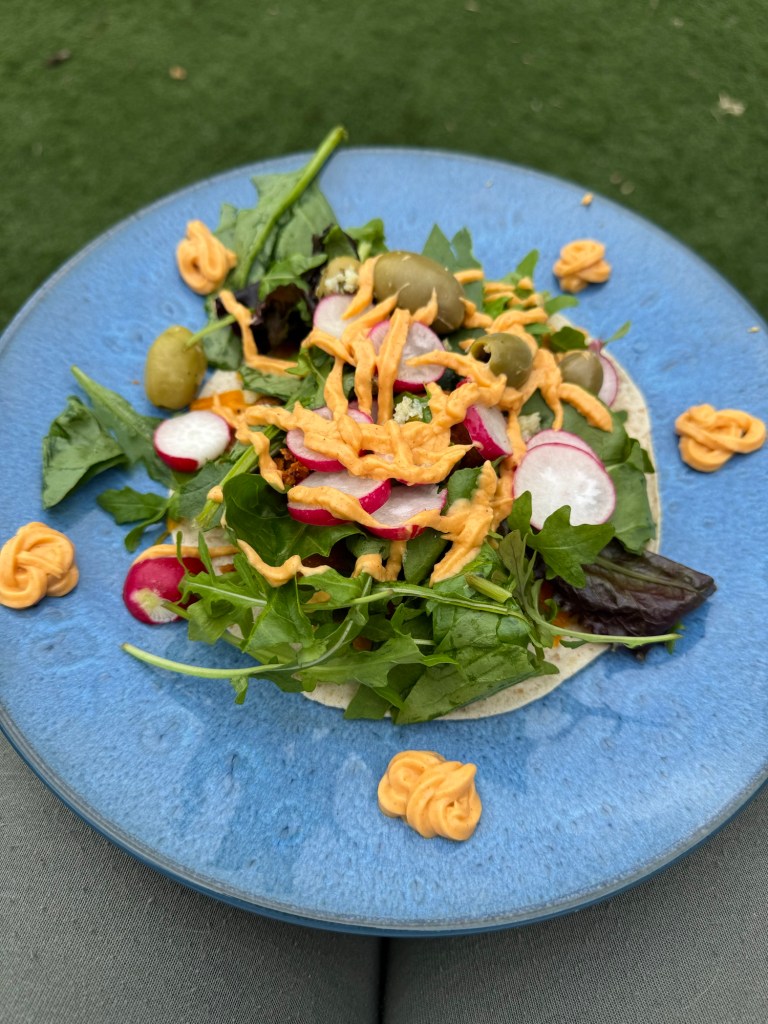 I sat down at lunch and watched the end of a film I’d been watching. I hate a lovely sweet potato pakora wrap for lunch.