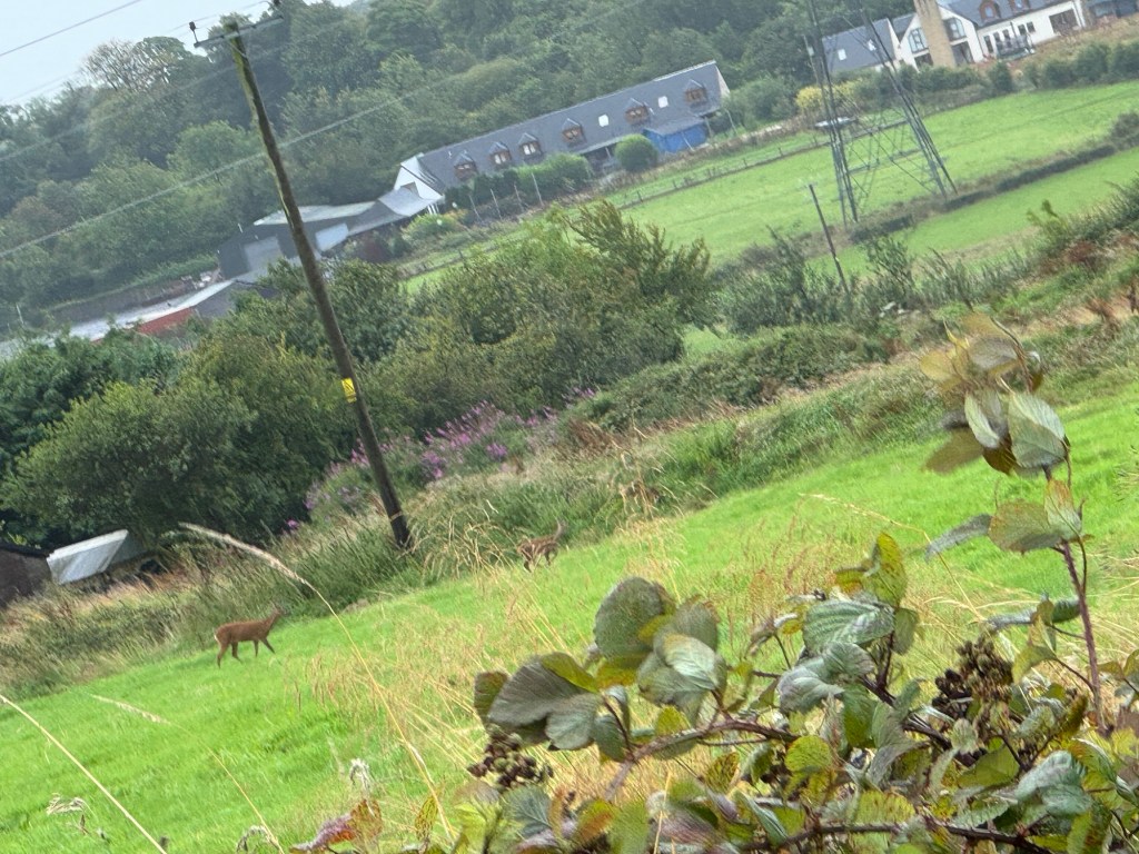 I spotted 3 deer in the field next to us… calmly called the dogs and pretended it was just time to head home… little did they know!! This is not the best photo! Two of them ran off.