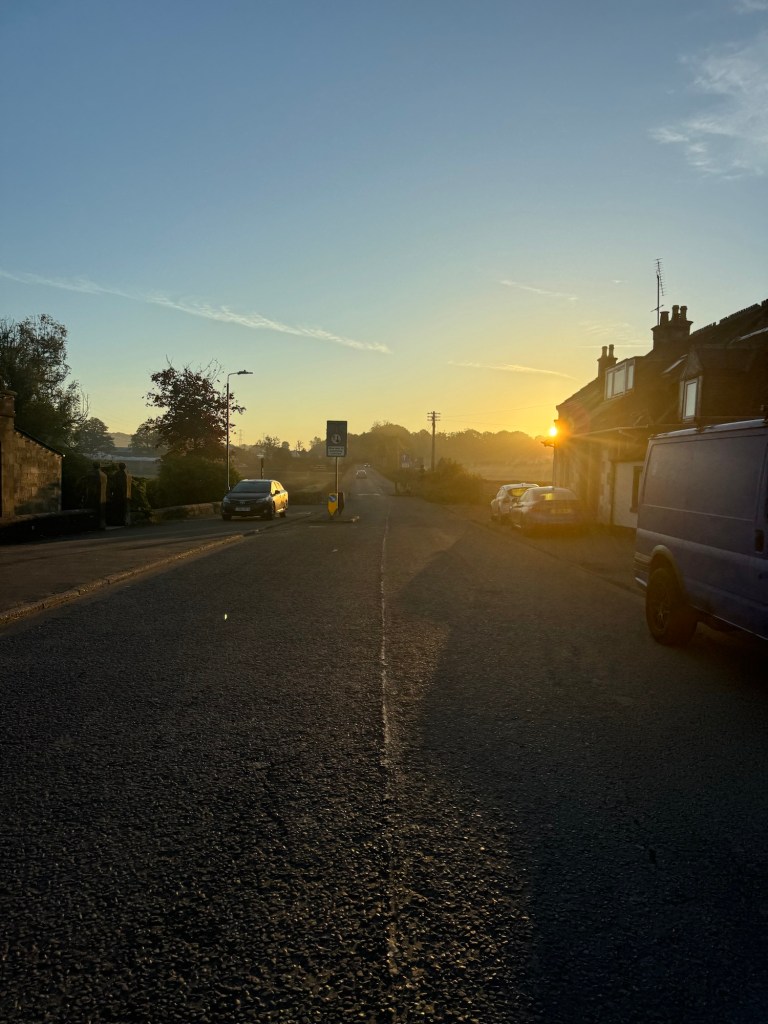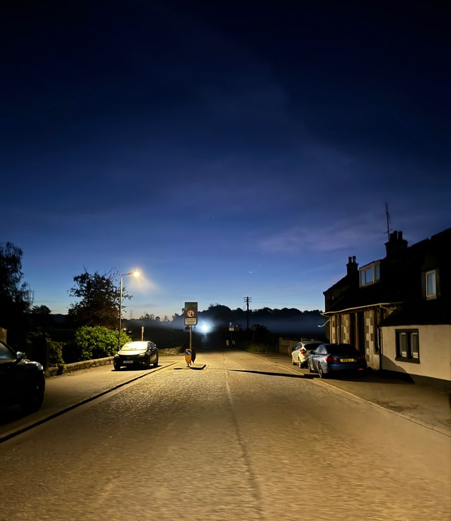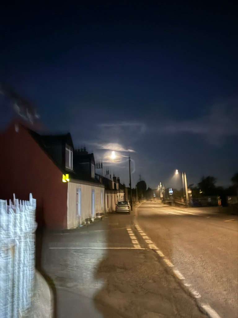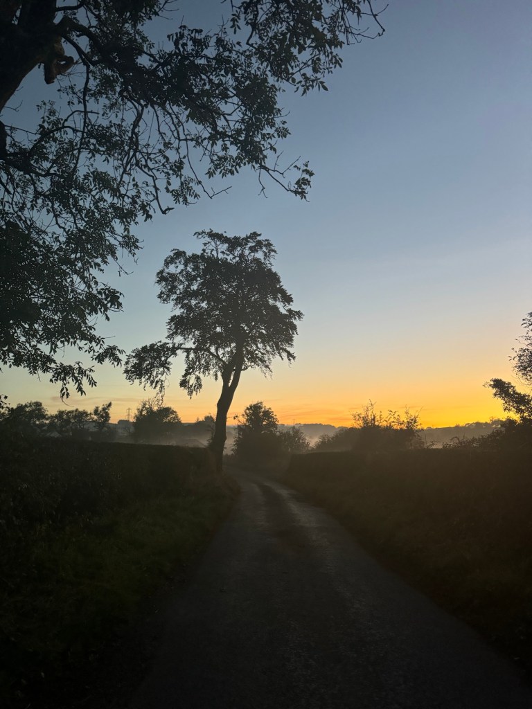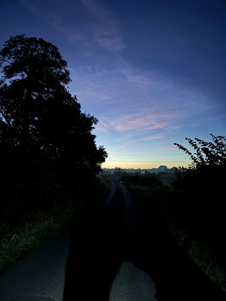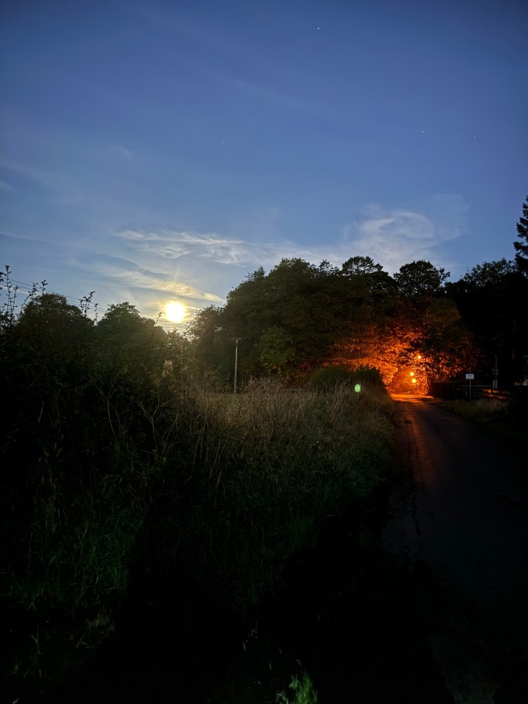 I love this next shot…. Bearing in mind we are running and when we stop to take photos, I have to get the phone out its pouch and hold it still for 3 seconds to capture the shot. The light of the moon versus the orange glow of the streetlights through the trees.