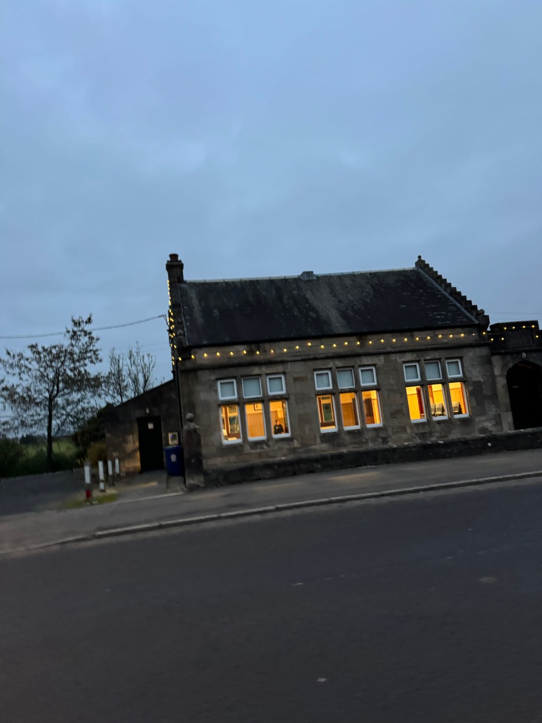 I noticed the village hall has its Christmas lights on tonight… how pretty.