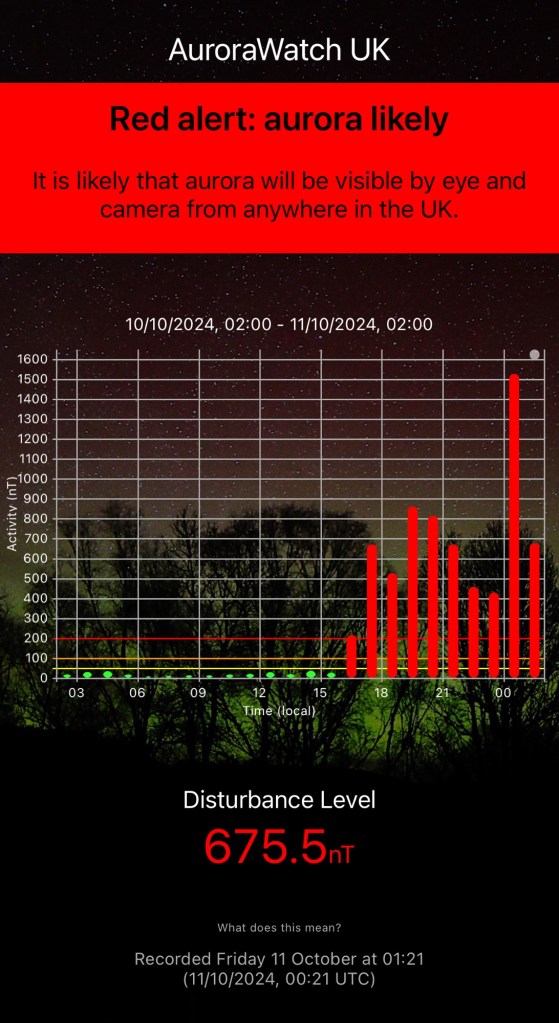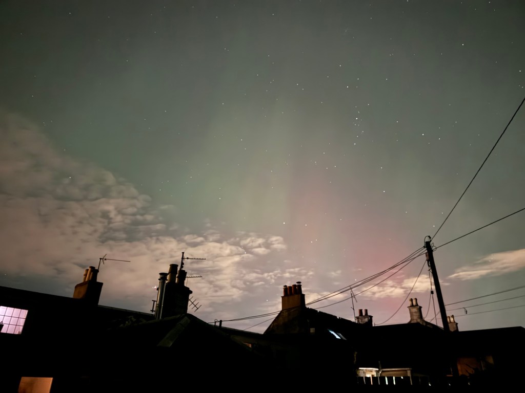 I knew the Aurora was a very strong possibility last night. I kept getting alerts on my phone and then Rachel two doors down was the best alert ever….. “it’s here!” so I call Claire next door and drag her out the back and we “meet” in our respective gardens.