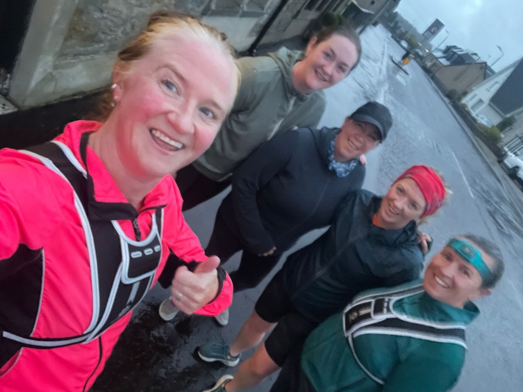 5 of us were running at 6.45 and by the time we met, it was still dark and pouring with rain.