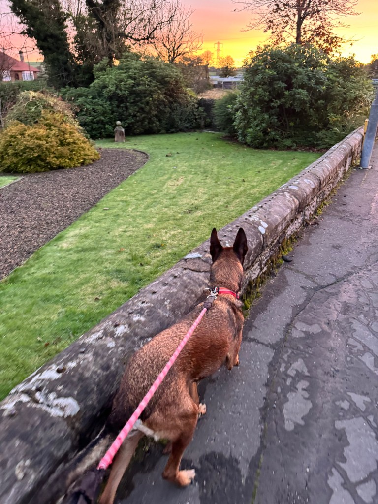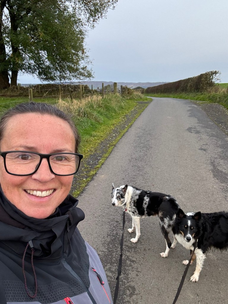 Then I took Calaidh and Freya for a big walk. The sun looks so lovely in the sky but it’s only about 3-4°C. It is cold.