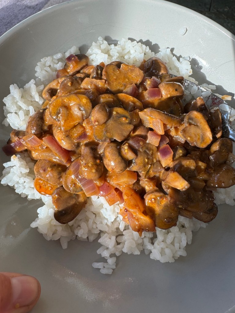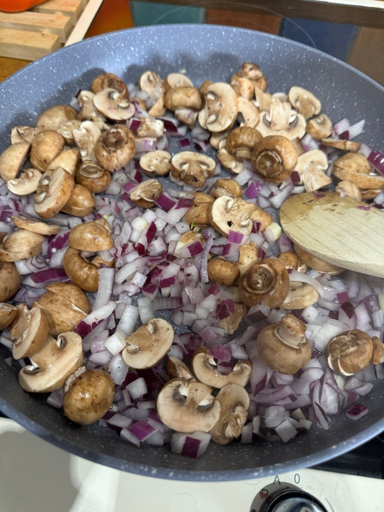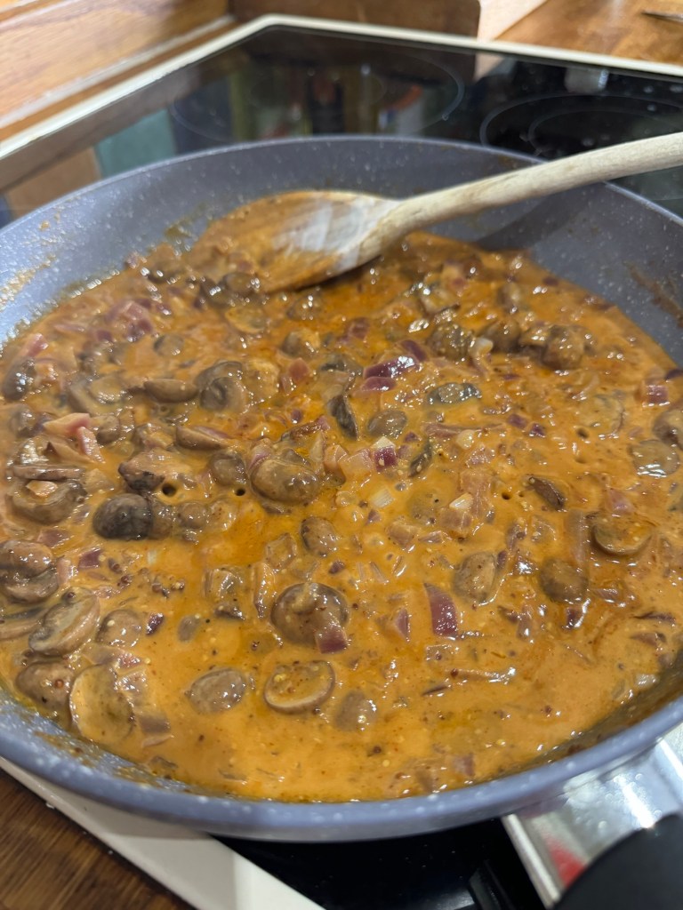 I came home and started a Mushroom Stroganoff from Healthy Living James. His recipes are easy enough for me to follow and I LOVE a mushroom! šāš«