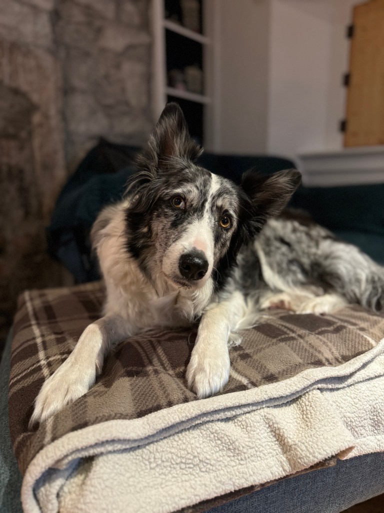 I made them sit on the bed before they could get lots of hugs and kisses. You can see the excitement as they know what is comingā¦. Maybe not from Freya but heyā¦. I feel like she is saying, this is just dumb⦠š