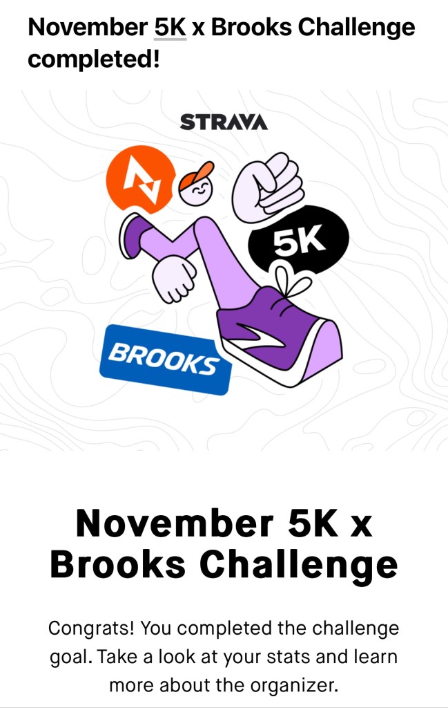 I also completed a Strava challenge I joined yesterday, to run 5K in November. I love that Iāve done it within a few hours of the first day of the month. š