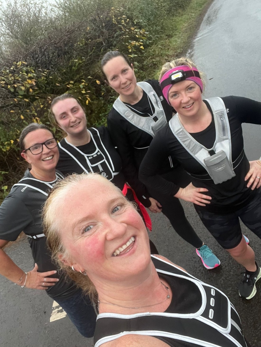 Lynsey, far left (I do mean far right as I reread thisā¦ā¦ Iām so bad with my left and right!) I hope youāre all having a great weekend. had already run 7.18 MILES BEFORE she met us. We met at 7am⦠can you believe that?!? Sheās a running machine. š