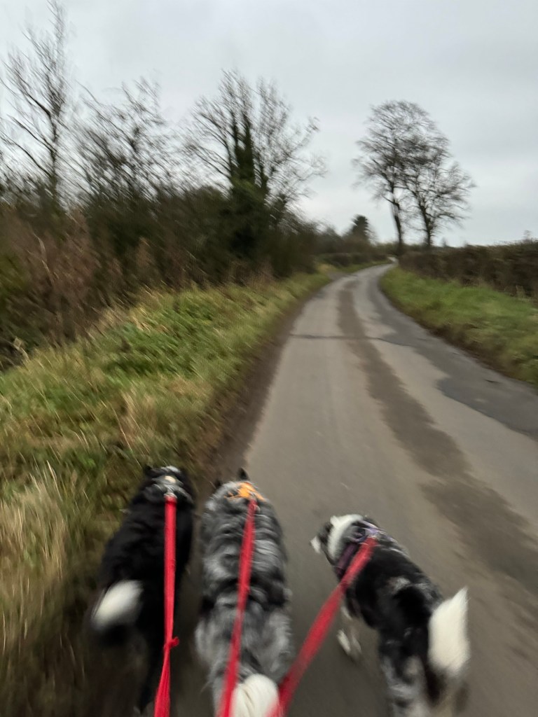 I was up and out with el doggos at 7am. it was just getting light so the pic is a bit blurry.