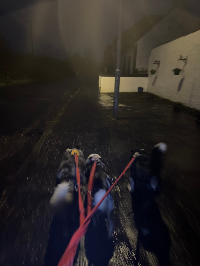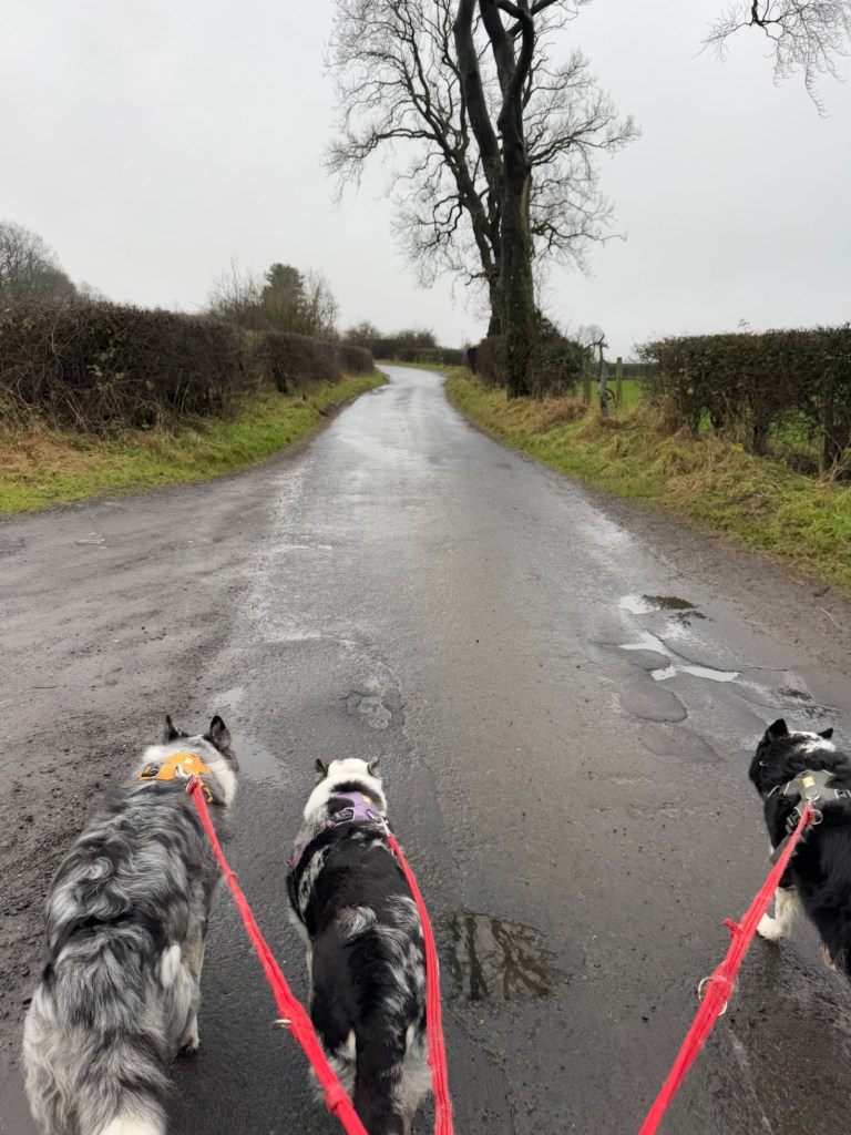 The dog’s room is back ready for dogs. I still have way more to do but I spot a gap in the torrential rain, and head out with the Borders.