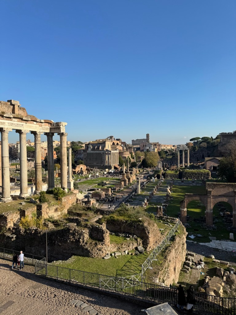 And round the corner to this amazing view of the Roman Forum. I visited this in April. Who knew you could see it for free!!