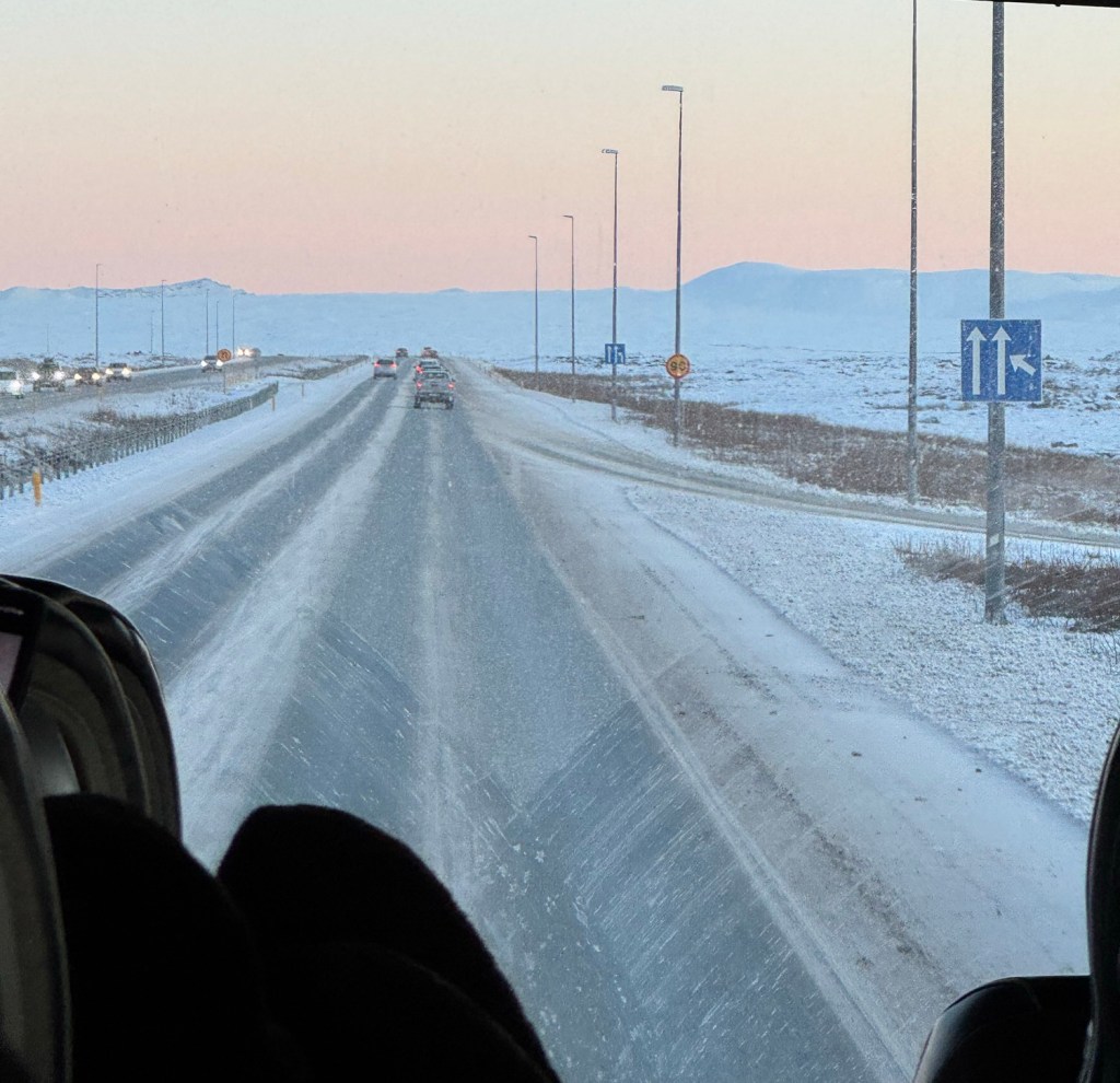 It’s a beautifully freezing cold day in Iceland. We land around 2.30pm and only catch the last of the sun.