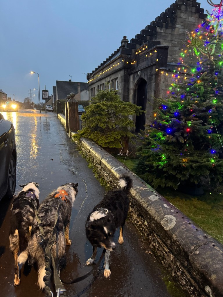 Here we are at the village Christmas tree! Thanks to the Gateside Plant Centre for giving it to the village and well done to Rachel two doors down for putting the lights on it!!