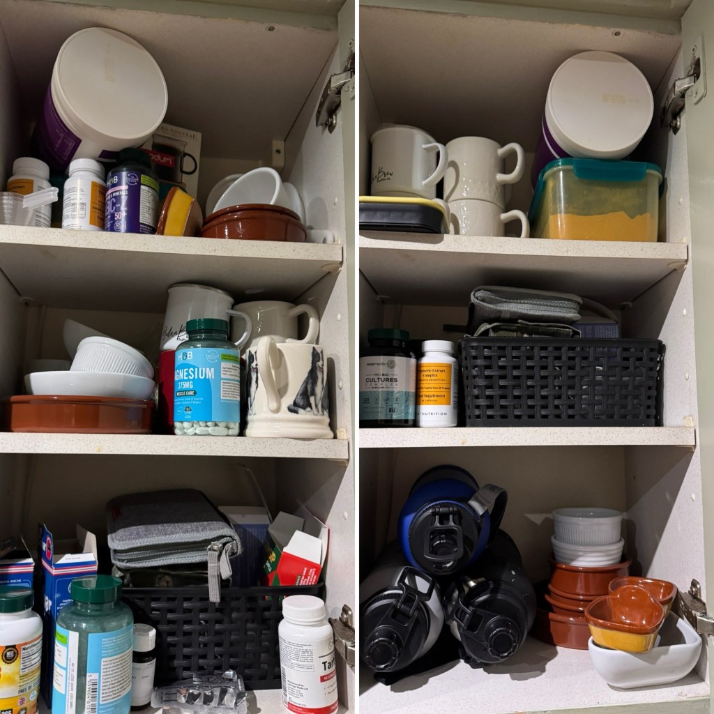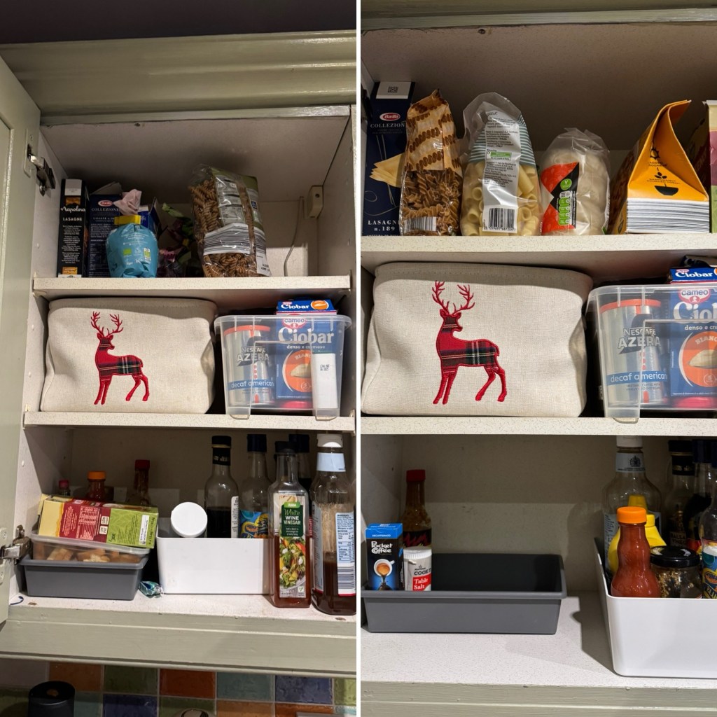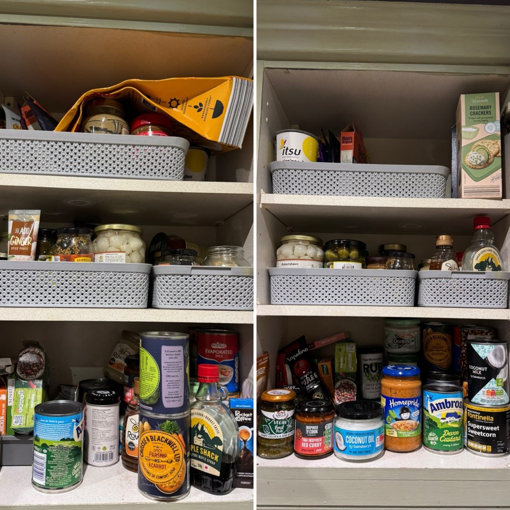 Now there’s not a massive amount of difference but the cupboards are all clean inside and I threw out the noodles best before December 2021, among other things.