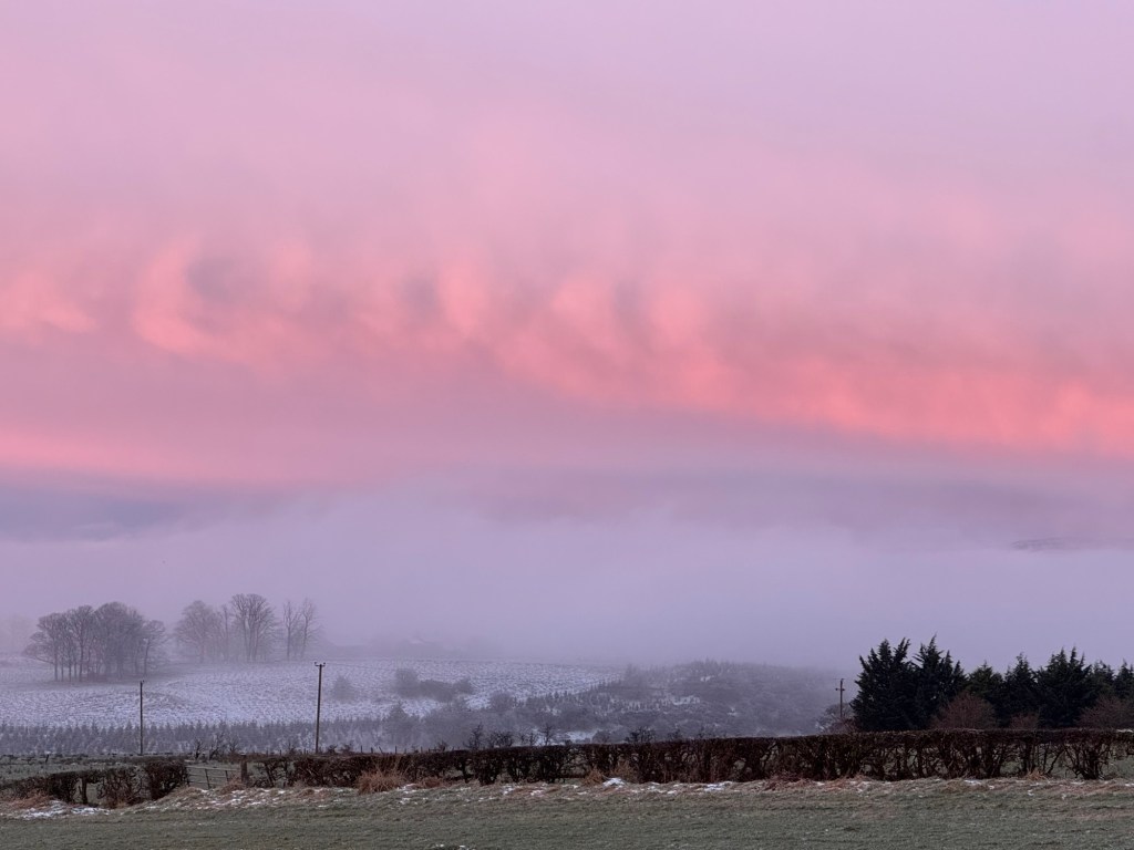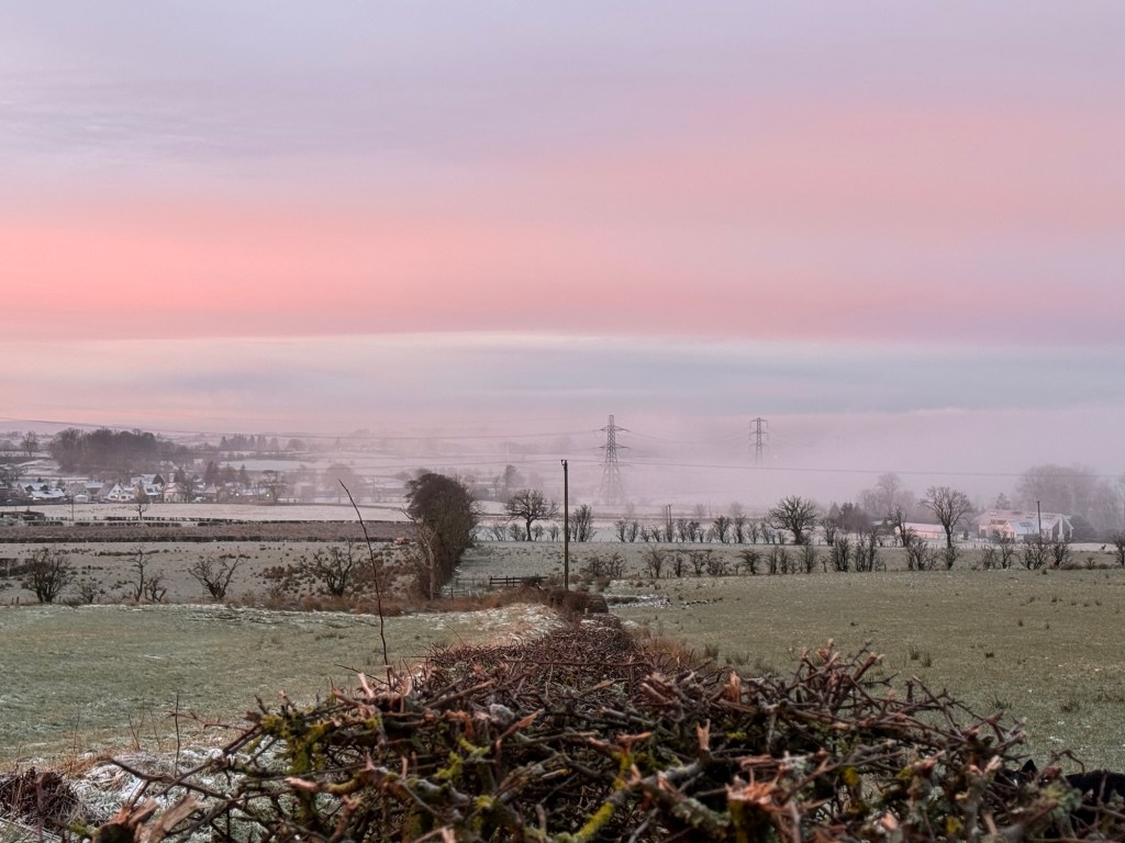 While the sun rises in the East to the left of me, the West is putting on its own show, as a freezing fog rolls in, from the Garnock Valley.