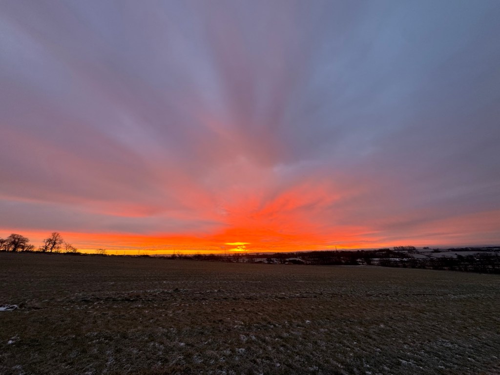 I thought Iād better just walk the dogs while I was on the move. I shoved an anorak over my running gear and set off up the hill. The sunrise had gone and this is al thatās left of it.