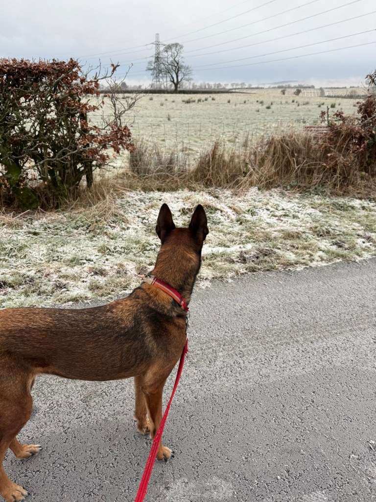 It was very cold so I put on an extra layer and my thicker leggings. The ground was so frosty that it almost looked like snow. It was white and furry.