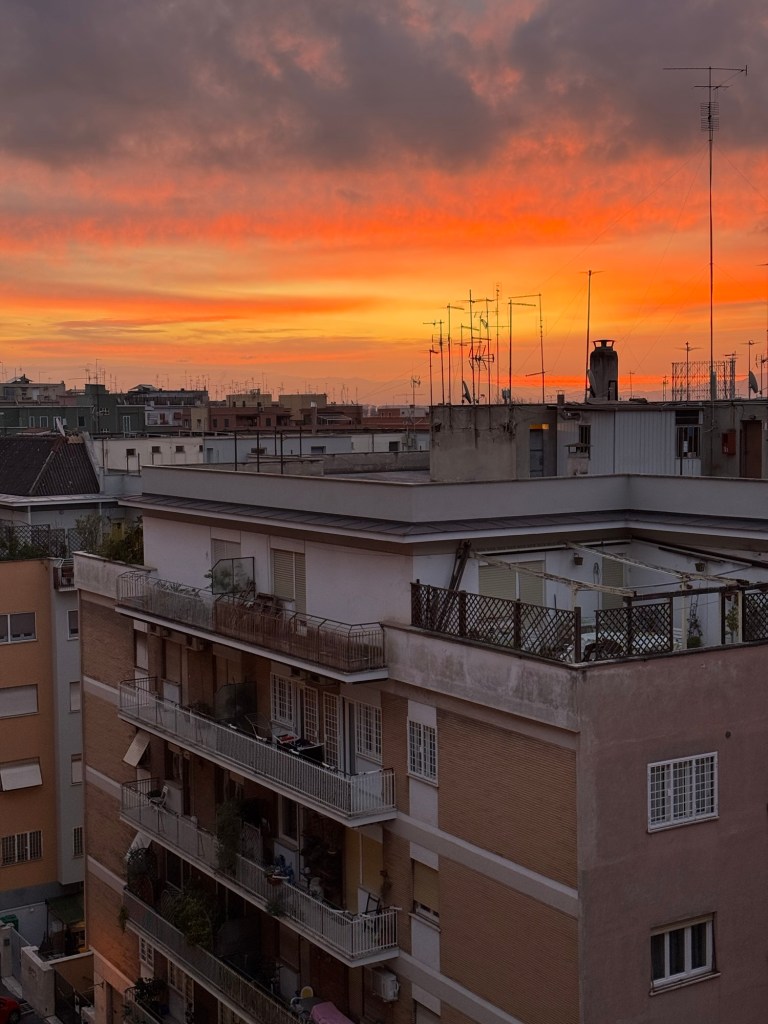 What a beautiful sky in Rome when we woke up this morning.
