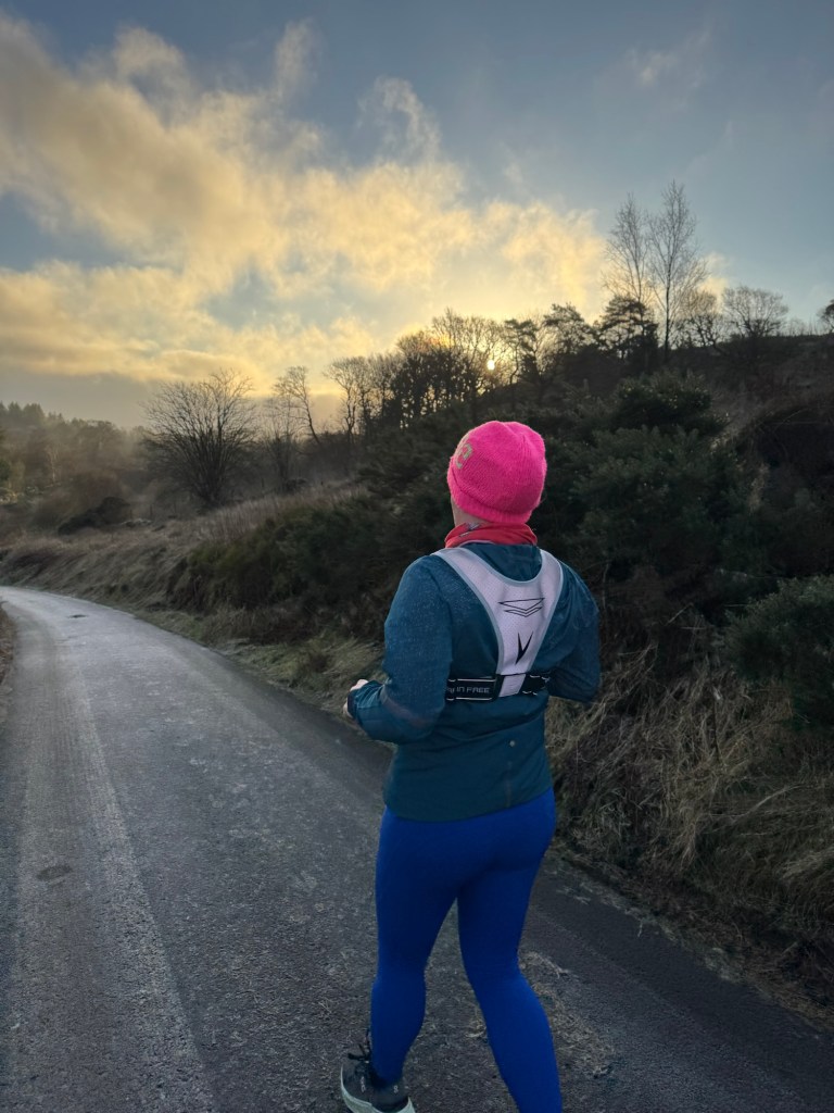 When I woke about 6.45, the house felt really cold. It was getting light and there was a frost outside. I was running with Lynsey at 8.30am this morning, almost a civilised hour. We were running from her house for a change so I had to let the car defrost.