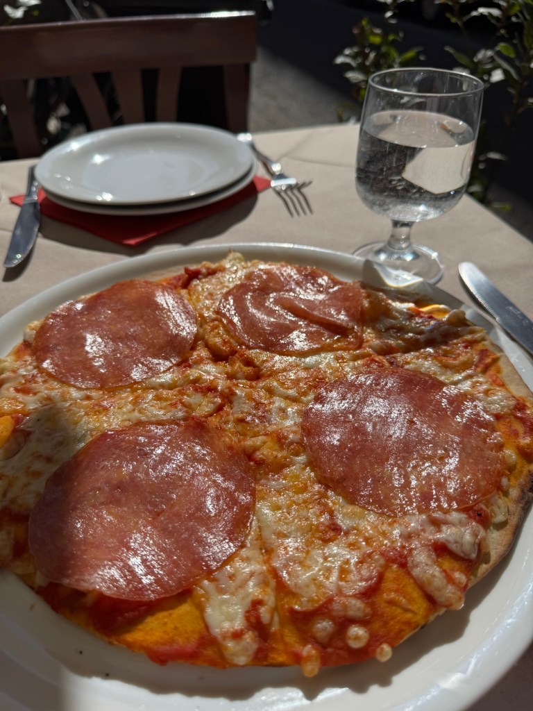 My criteria for picking a restaurant…. Does it serve pizza? Does it have space for one sitting somewhere private-ish… is there a seat in the sun.