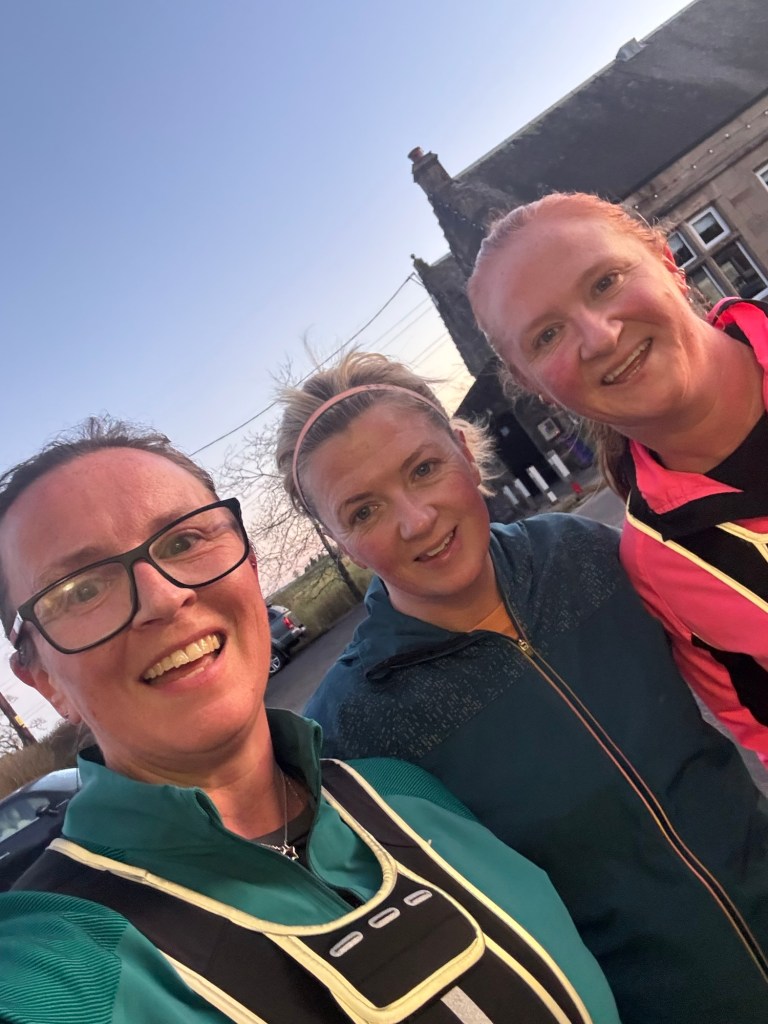It was only 2°C when Lynsey, Rachel and I went out running this morning… check me… officially back in action….