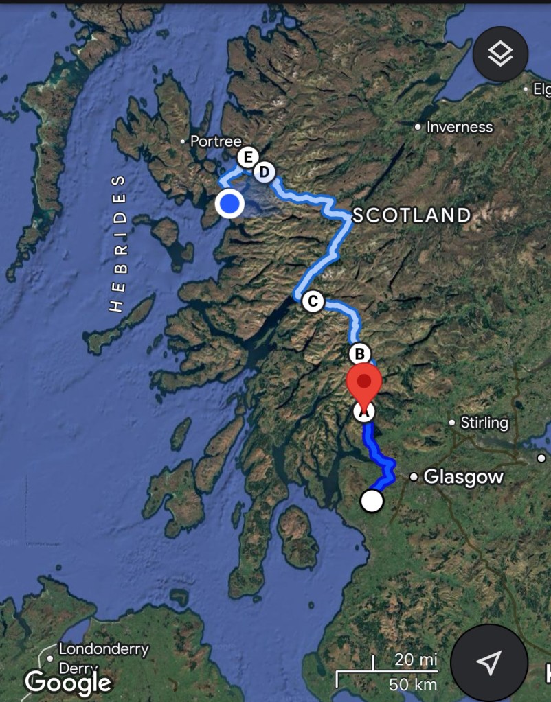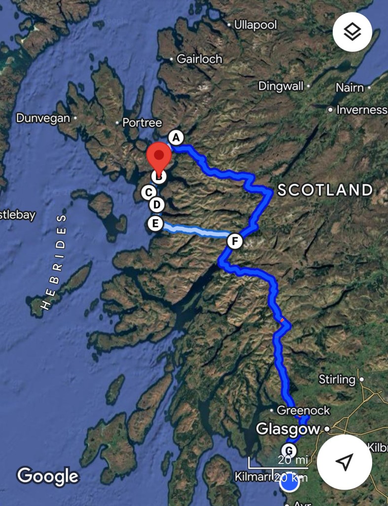 Home to Loch Lomond, Glencoe, Fort William, Eileen Donan Castle, Plockton and the Skye Bridge on the way up, with the CalMac fferry from Armadale to Mallaig on the way back, taking in the silver sands of Morar and Arisaig!