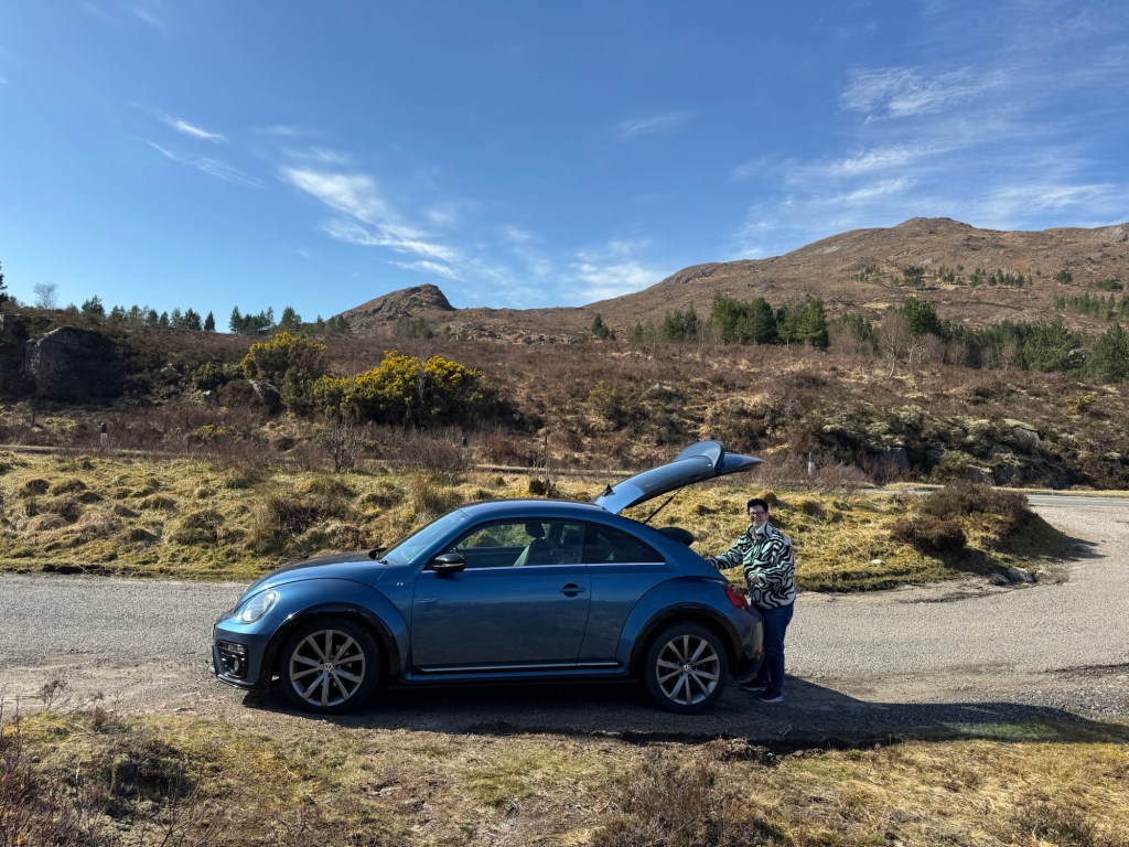 Scotland is the most beautiful country at the best of times, but to see it in the pure blue sky and beautiful sunshine, with bright yellow gorse blooming everywhere, it’s very special. Helen has also been the best travel buddy and co-pilot and I look forward to our next adventures in August.