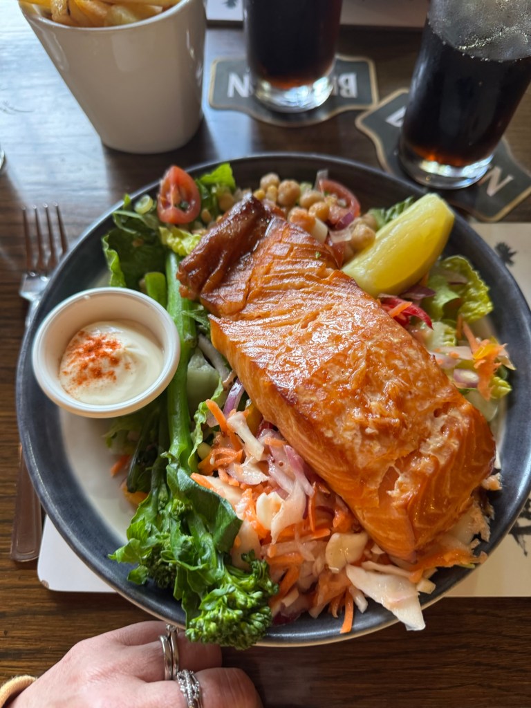 I’ve just had salmon with Korean BBQ seasoning, along with roasted asparagus and broccoli for dinner.