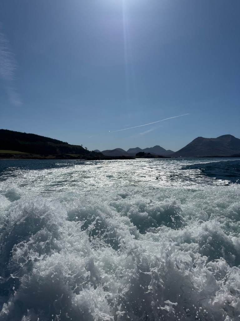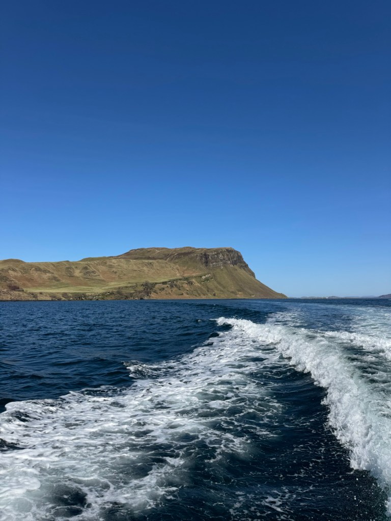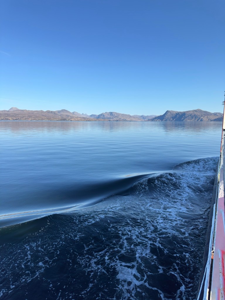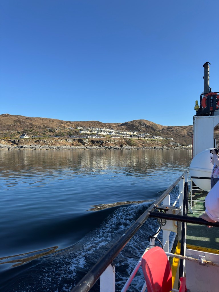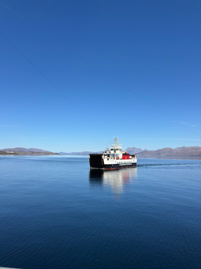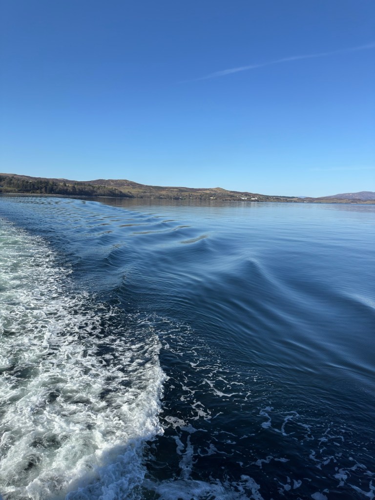 We were sailing on the Loch Brusdha from Armadale to Mallaig. The water is a mill pond. There’s not a breath.