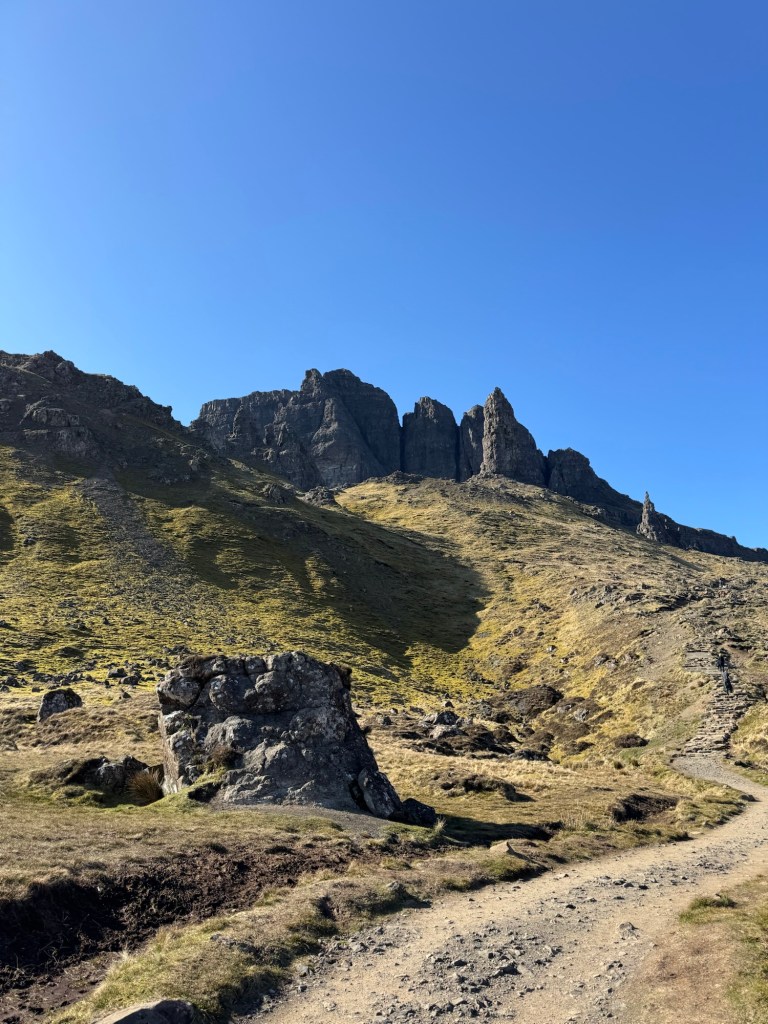 We drove out from Portree up to the Old Man of Storr. For the purposes of doubt the tall monolith (check me) is the Old Man of Storr.