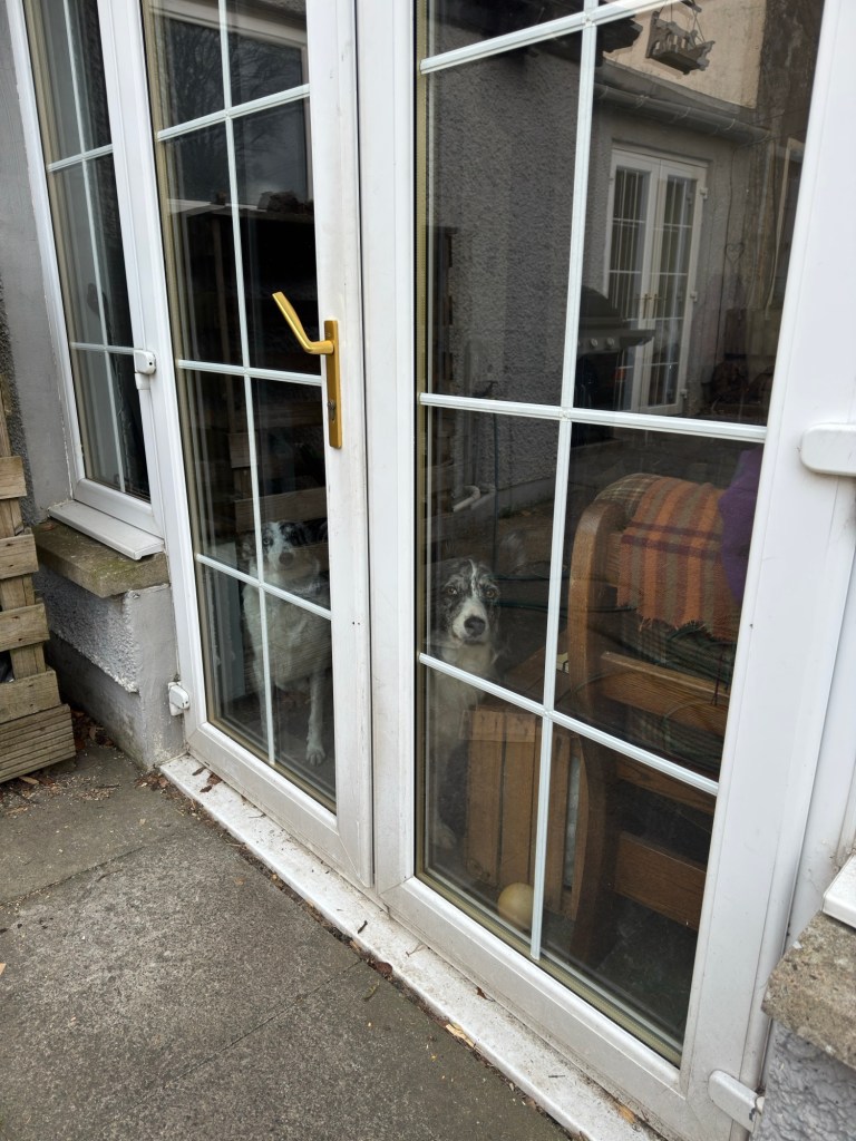 I had to leave via the back door this morning, check the wee faces at the window, wanting to come with me!