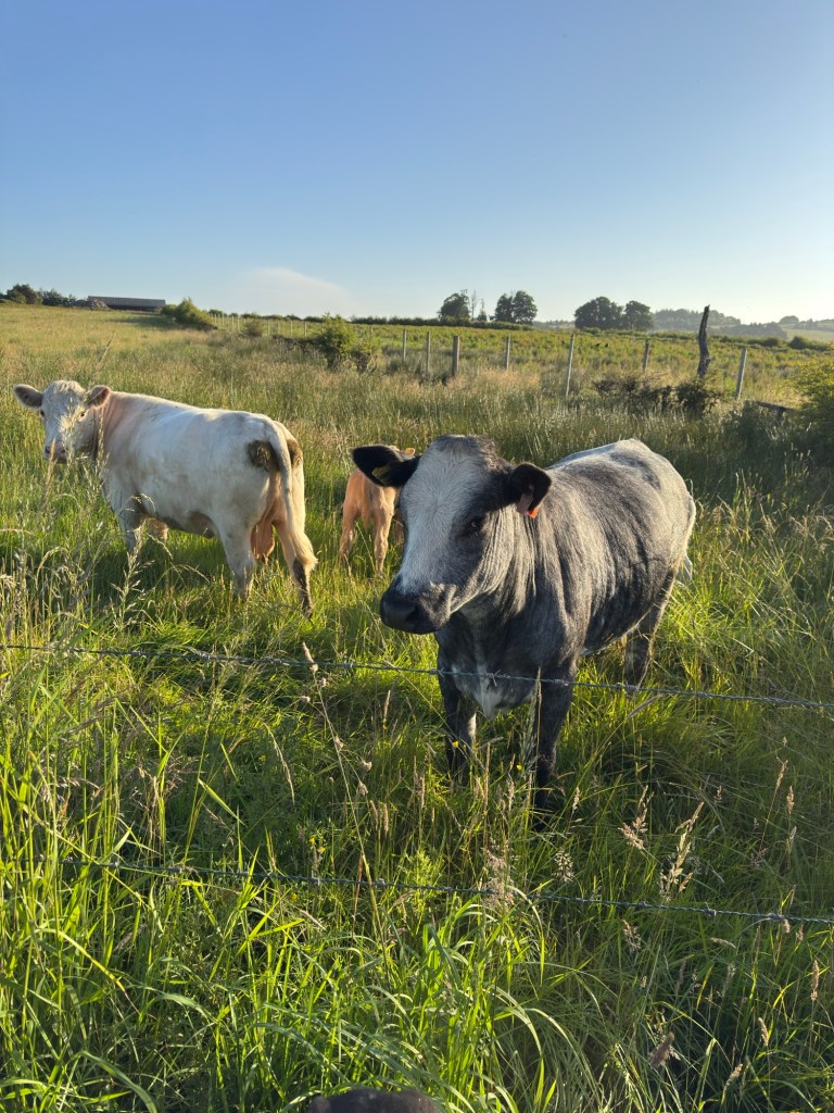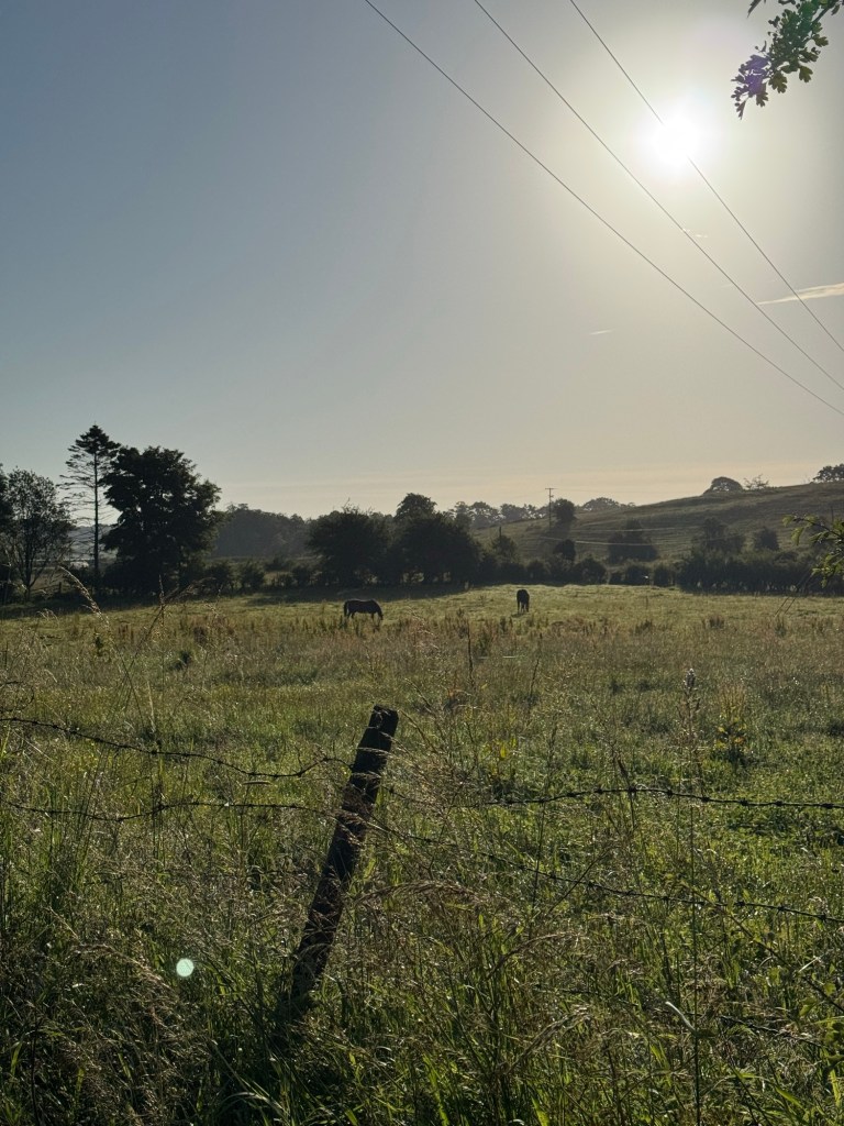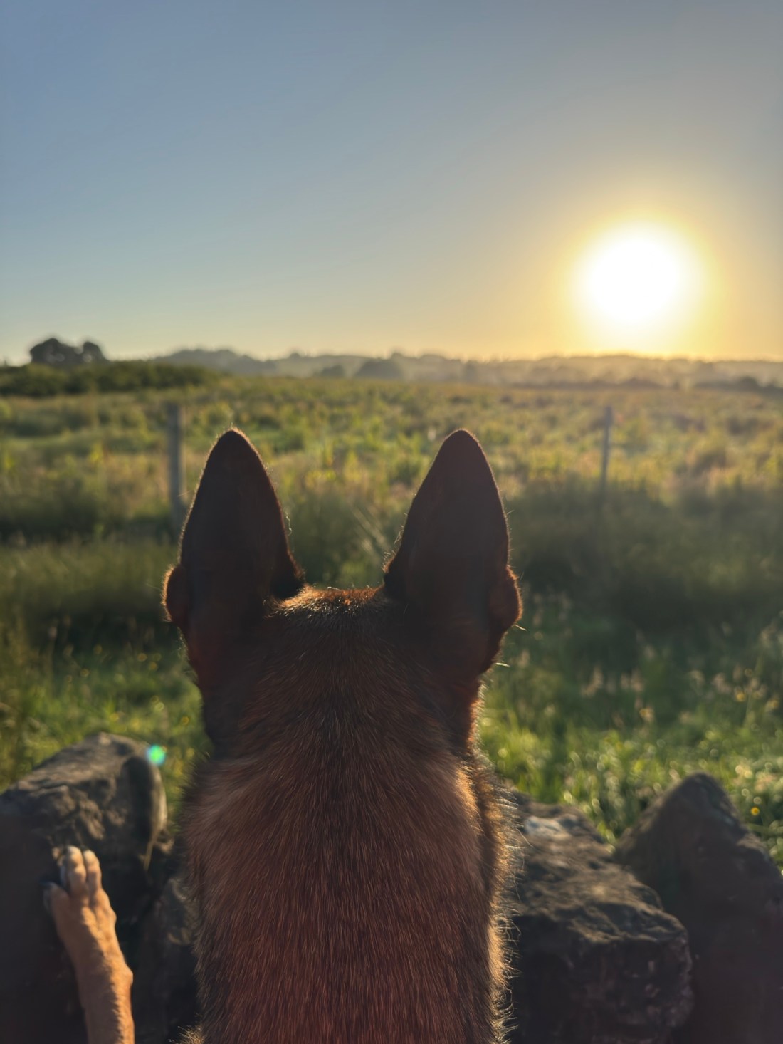 Khaleesi spotted two deer 🦌 in this field. Behind the deer fences! It looks like she’s staring at the sun ☀️ 😆