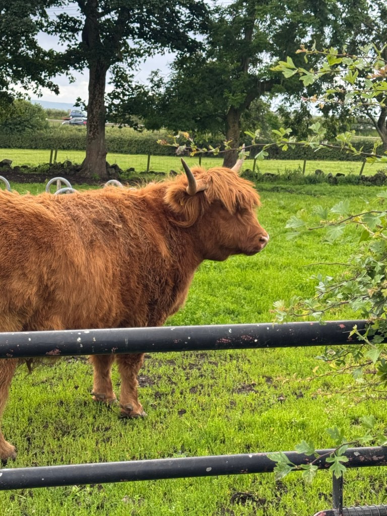 I drove for 2 hours to Gatehouse of Fleet and stopped for an iced coffee (DECAF! But forgot to ask for oat milk so it was cow milk…. And I survived, I just don’t like it as much!) also had a wee bit of raspberry and custard cake.