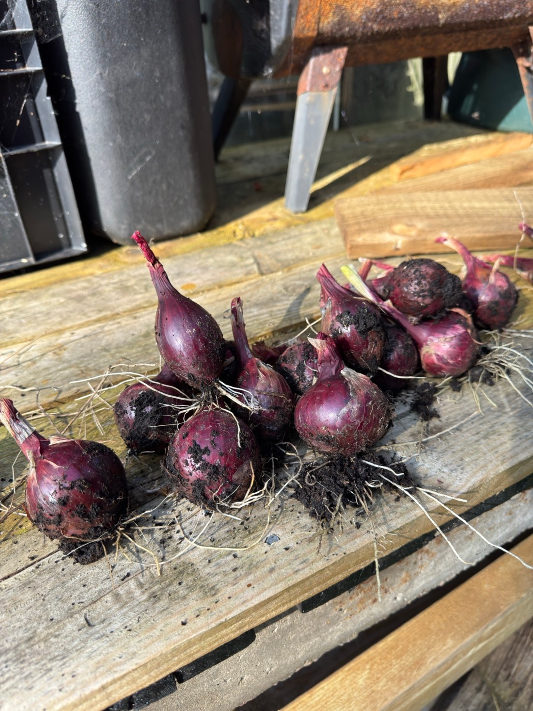 I got home and fed the dogs, brought the bins back round to the garden and picked my onions that I’ve been growing next door! They are not as good as Kenny’s onions but he grew his…. I just let mine get on with it and look after themselves 😆