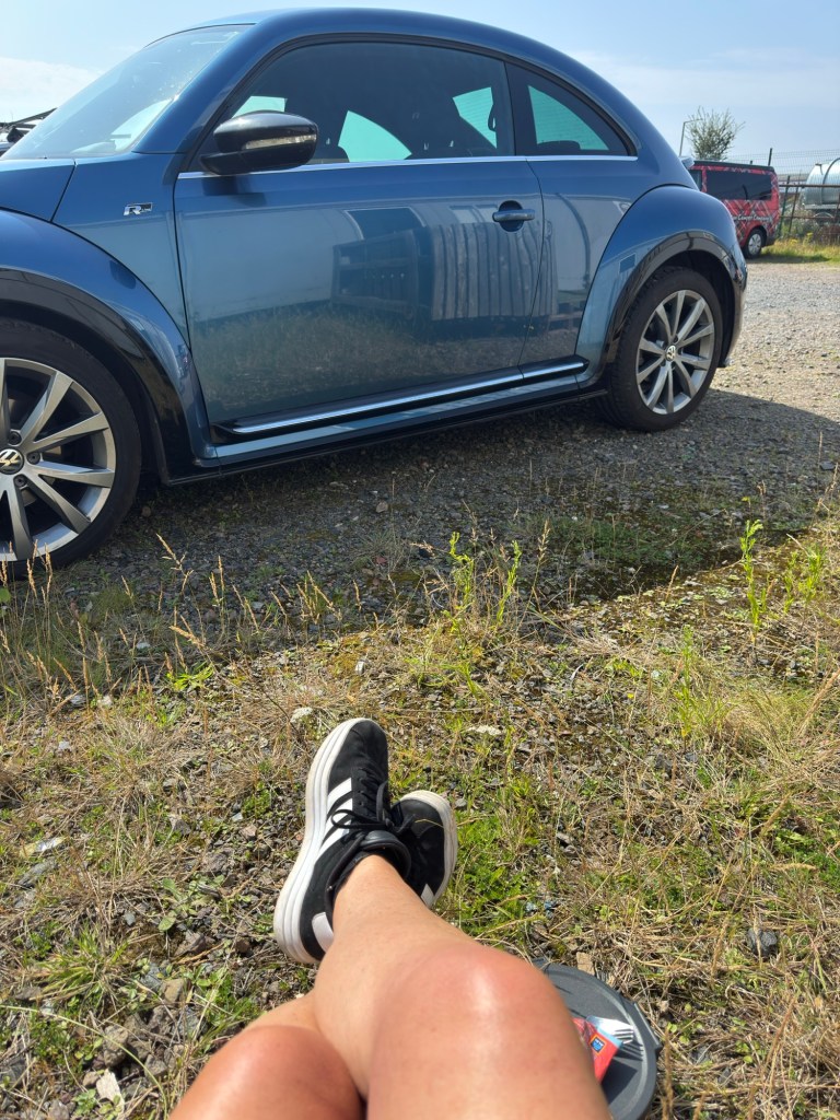 I sat outside at lunchtime on my own and it was ROASTING….. about 27°C. I sat in the weeds in the car park, next to my clean car!!