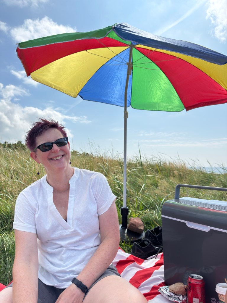Had lunch up on the grass by the car and used my new umbrella for the first time.