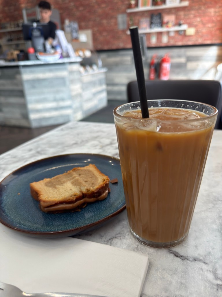 I went to Perk Largs for an iced coconut milk decaf latte and had to have some banana and toffee loaf!