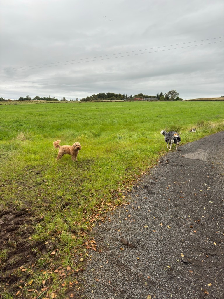 I then took Freya and Bhruic out and we met my neighbour Holly with Leo the cockapoo!!