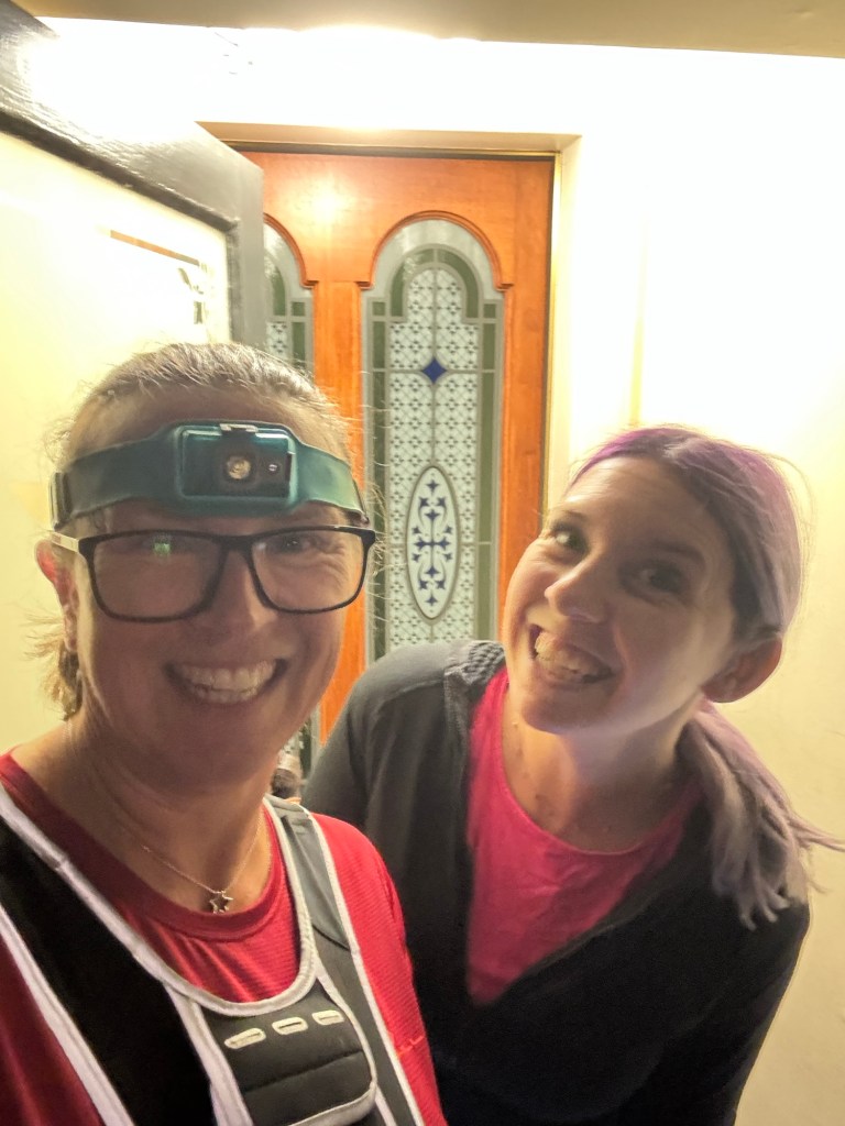 We all had head torches this morning…. The girls are up the hill on our way home… lovely sky.