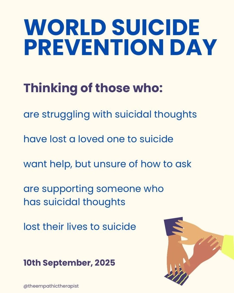 Today is World Suicide Prevention Day…. This is from the Empathetic Therapist, please contact her if you think you need help.