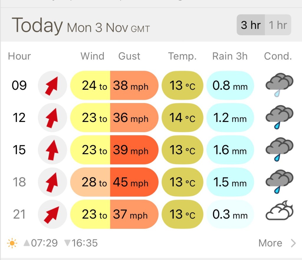 It’s been rotten weather today. Torrential rain and the odd gust of wind.
