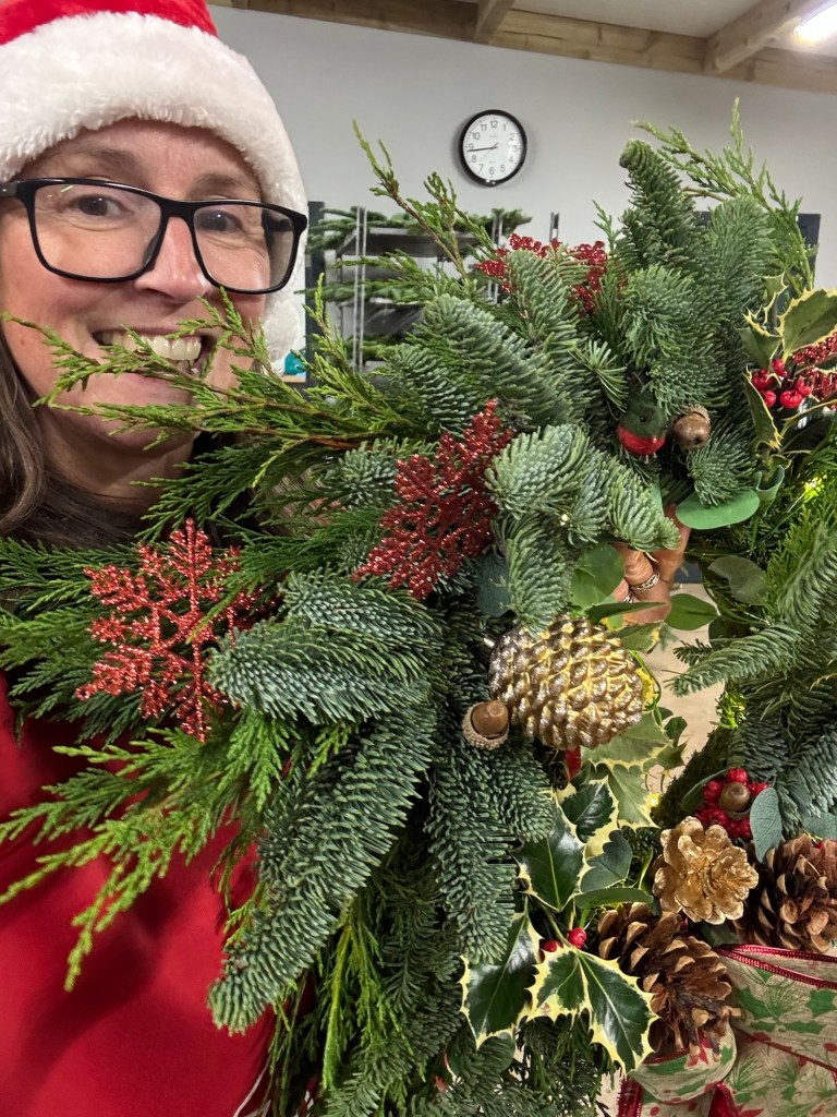 I came home from work and had a call about a her Travel Circle, then made 2 dog behaviour calls for Craig and then headed up to the Gateside Plant Centre for our wreath making class.