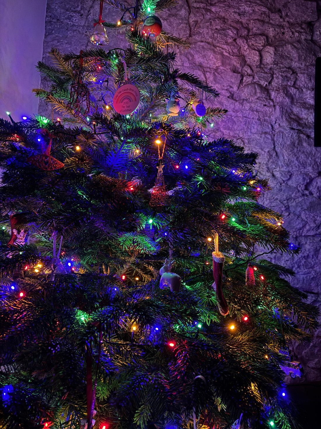 I’m now sat next to the Christmas tree with Bhruic, listening to an audio book.
