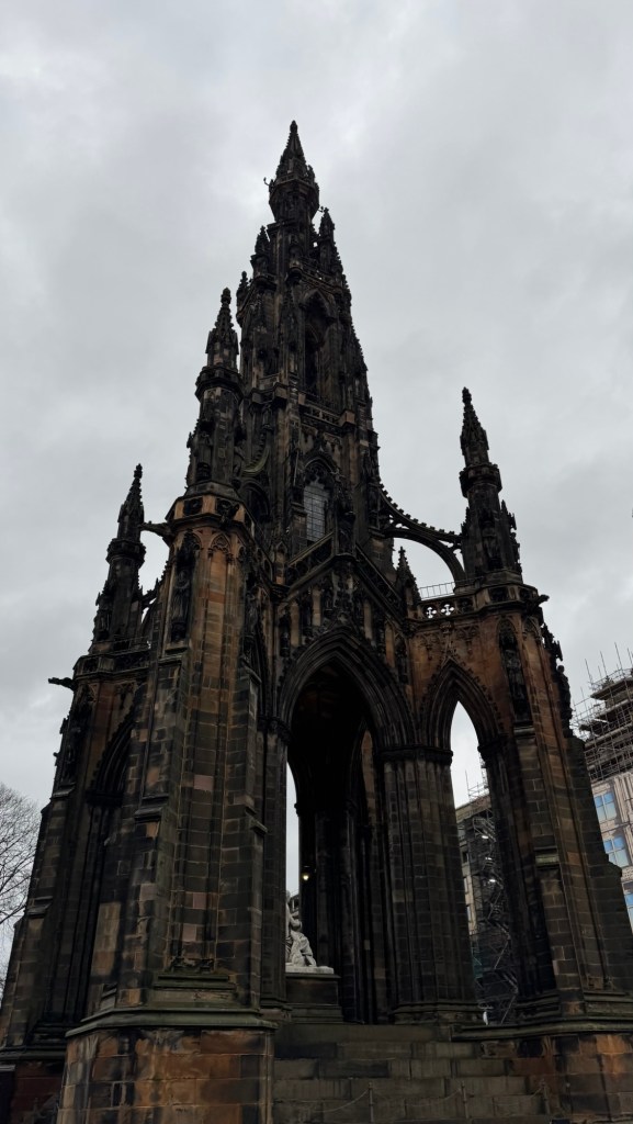We got off the tram at the bottom of the Mound and walked through Princes Street Gardens to the Walter Scott monument.