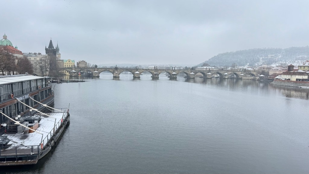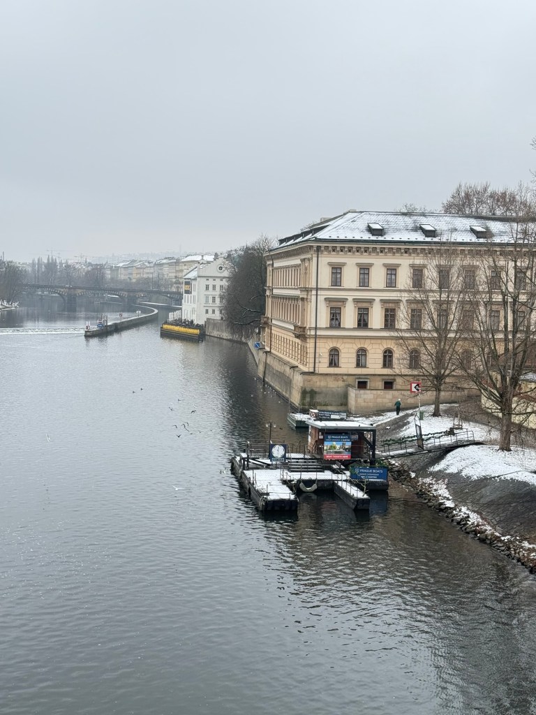 I could see lots of people down on the banks do the Vltava River…. Taking photos of the bridge, so we headed there.