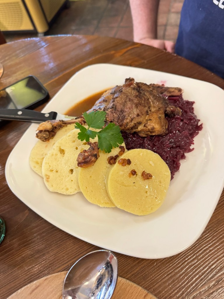 We went to Restaurant Můstek for lunch. Craig had duck.