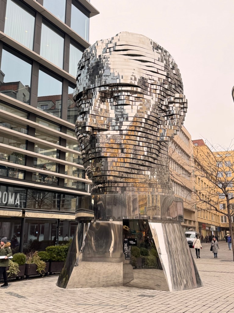 By sheer fluke we passed Franz Kafka’s statue. Another synchronicity. We’d wanted to see it but weren’t looking for it!