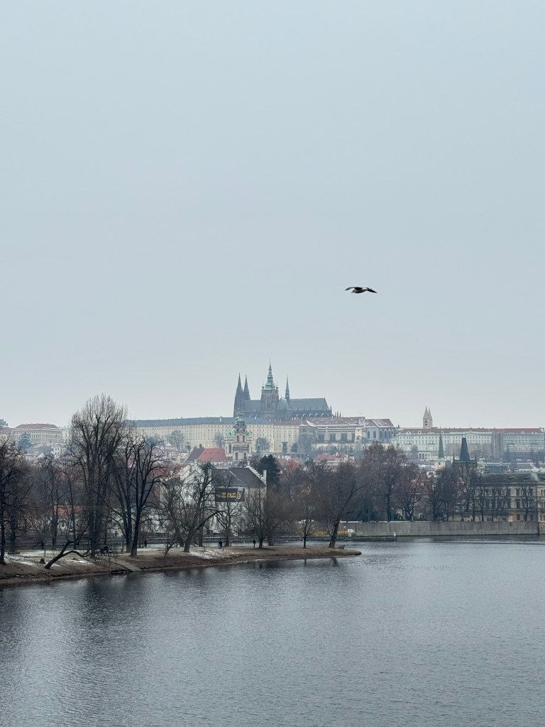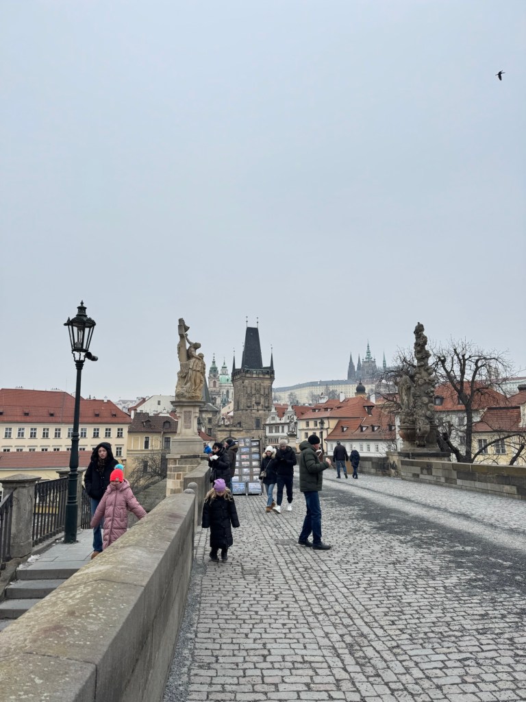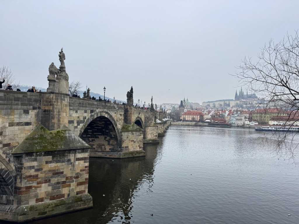 Looking back down to the Charles Bridge, of course I made Craig walk all down that left hand river back so we could cross the bridge one last time!! 🫣😆