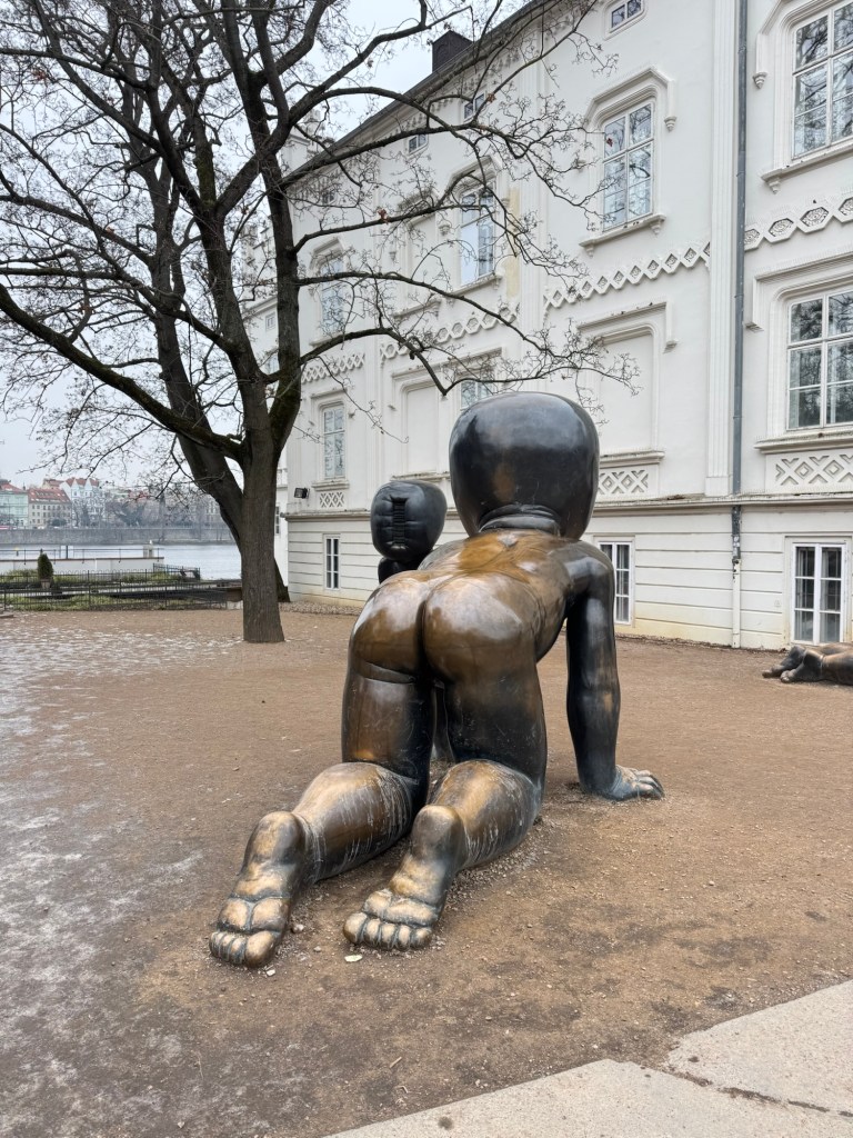 There were 3 of these…. I’ve called it “does my bum look big in this…. yes” 😆😆 there were 3 of them. I’ve looked it up and they are a sculpture by David Černý in Kampa Park. They have very ugly faces (hence I never took a photo!) which I’ve now read are barcodes, representing the dehumanisation of society. Hmmmm I think it hit the mark know that I know.