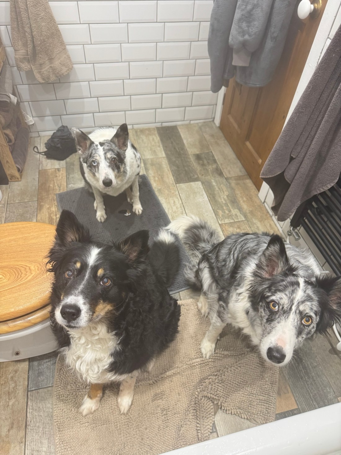 This was my shower his morning! Hence the steamy photo…. This is life when you in it 3 Border Collies into the bathroom!!